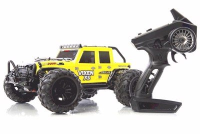 The Vixen is a powerful 4WD RC vehicle with updated performance components. Ideal for RC drivers who have a bit of experience. Although the Vixen is capable of speeds of 40km/h, it has an option to reduce the speed until the driver feels more confidence in his skills. The Vixen is packed with hobby grade features like real steel ball bearings, metal suspension mounts, aluminum motor heatsink, metal wheel hex adapters, metal center driveshaft and front universal front driveshafts. Performance oriented, the newly developed LiteHawk XS Chassis features quality parts such as the use of motor heat diffusors, uprated battery connectors with “saddle Pack” battery positioning. A front and rear double wishbone suspension system will help drivers handle corners and uneven surfaces with confidence. Other features include a spring type steering servo saver and LED bumper lights that can be remotely controlled. The Vixen is designed to be portable. Convenient size easily fits in your backpack! Uses 2.4Ghz Digital Controller technology. Includes rechargeable battery and charger
