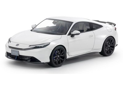 The Honda Prelude was first teased at the 2023 Japan Mobility Show as a concept car. It was later unveiled as a final product at the Tokyo Auto Salon in April 2025 and marks its sixth-generation iteration. The fifth generation was last sold in 2001. The first-generation came out in 1978 and made an impression among commuters looking for a compact, sporty and above all else, fuel-efficient car. The NEW Prelude follows its sport compact coupe heritage by offering a sleek body design and 2.0-liter four-cylinder hybrid engine. This kit builds the all-new 2025 HONDA Prelude. Choose to build between reclined and normal positions of rear seats, and with and open or closed tailgate. These setups can be changed even after assembly. Includes parts recreating suitcase, golf bag and Boston bag (one for each). Part depicting the optional rear spoiler is also included. Features radial tires, decals, metal transfers and masking stickers.