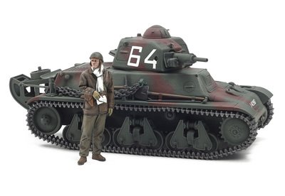 Before WWII, French Army developed the H35 for the Cavalry and in 1939, the H39 appeare d as the improved version of the H35. With improved cast pieces such as hull and turret, the H39 featured a 120hp engine and L/33 37mm gun, and it was in service in the German occupation of Norway in 1940. After the French surrender, German forces upgraded numerous H39 tanks and deployed them as a German tank. This model assembly kit recreates the French Light Tank H39. The complex turret is realistically depicted, and features ease of assembly facilitated by slide molding. Assembly type tracks have one-piece straight sections and realistic upper “sag”. Features a realistic depiction of the trench tail used to overcome trenches. Metal chains are also included for the recreation of French Army tank. Includes variant-specific cupola, visors, engine grille, idler wheels, suspension bogies and antenna base. Choose between French or German Army specification. Also includes 1 full figure (standing French tank crew) and 1 torso (German tank crew scanning ahead from cupola). Choice of two marking options to recreate a French Army tank in 1940 and a German Army tank in 1945. A full-color painting guide is useful for camouflage painting. Length: 138mm, width: 56mm.