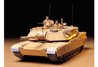 This is a 1/35 scale plastic assembly kit model of the U.S. M1A1 Abrams Main Battle Tank, the world’s most powerful tank which featured 120mm smoothbore gun, superb fire-control system that uses a laser rangefinder, and an impressive gas turbine engine. The massive, dynamic form of the tank has been realistically reproduced. Details such as engine grille and welded sections on armor plates have a rich finish. The model features 12.7mm and 7.62mm guns as well as smoke dischargers. Nylon mesh to depict the rear rack is included to enhance realism. In addition, a commander and a loader figures are also included in kit.