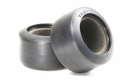 These are the kit supplied replacement rear rubber tires for the F104 chassis. They come belted and work best in track temperatures exceeding 95 degrees. As track temperatures drop below 95 degrees grip levels drop accordingly.