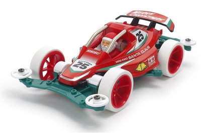 The 2025 Santa Claus version finds him in the Panda Racers car body on his special-colored VS chassis. The red ABS plastic Mini 4WD Panda Racer (#18084) body has a new colour and is paired with the new colour, metallic green ABS plastic VS chassis and rear stay. A parts are molded in white ABS plastic. The red 6-spoke wheels are paired with large diameter, low-profile hard white tires. Includes a Type 130 motor. The model features a 5:1 gear ratio. Includes Christmas design metallic stickers and a pre-assembled, pre-painted Santa Claus racer figure (same one as in # 95678 2024 version).