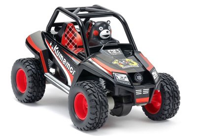 This is a special version of the beginner-friendly “Trail Mini 4WD” kit with the EZ chassis is being released to commemorate the 15th anniversary of Kumamoto Prefecture official character Kumamon’s birth (March 12). The kit ensures ease of assembly with a limited number of parts and does not require track courses and high-level tune-ups. The body with roll cage is molded in black. The EZ chassis is molded in smoke color (inside structure is visible). Deep red 5-spoke wheels are paired with realistic black off-road tires (elp to climb steep slopes). Low-friction POM gears and bearings (gray) give smooth rotation. Includes dedicated metallic stickers and a Kumamon figure.